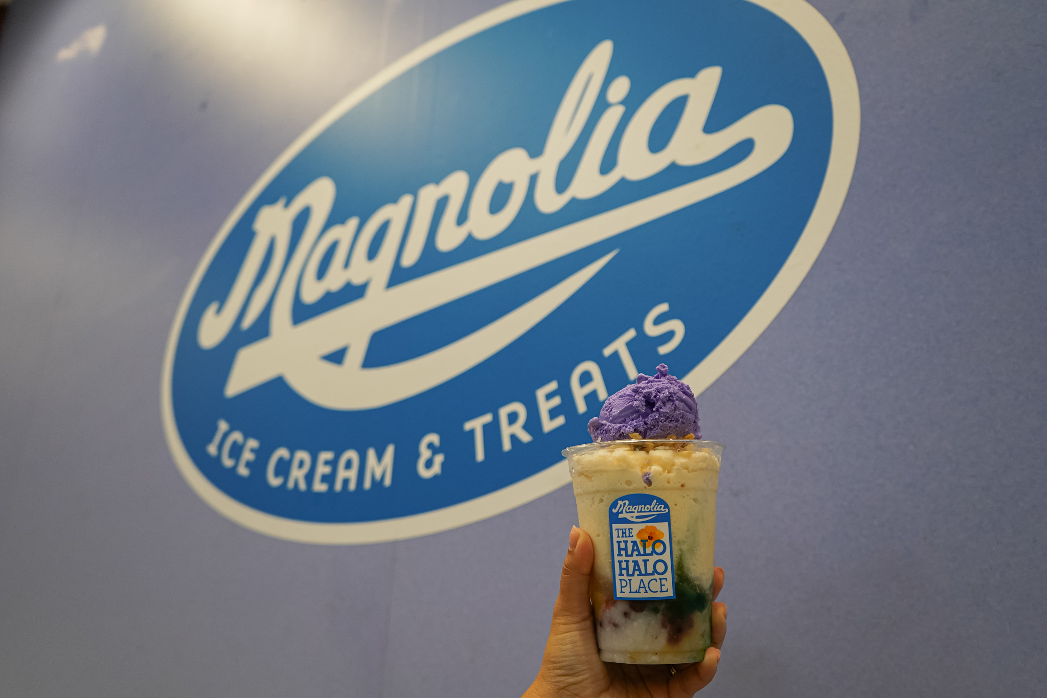 Magnolia’s Mahalo-halo piles on the fruit, coconut gel, date palm jelly, ube ice cream and crispy rice — mixing layers is encouraged.